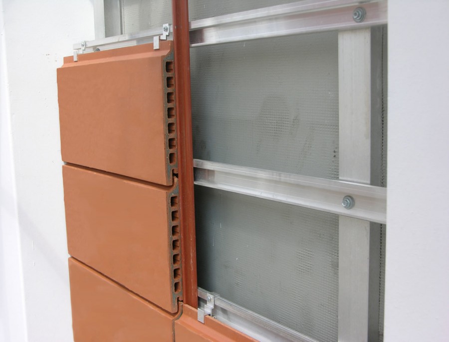 При создании внешней облицовки вентилируемого фасада можно применять натуральные терракотовые панели. Они представляют собой обожжённые плиты из глины. Это экологически чистый материал, который будет долгое время защищать ваш дом.