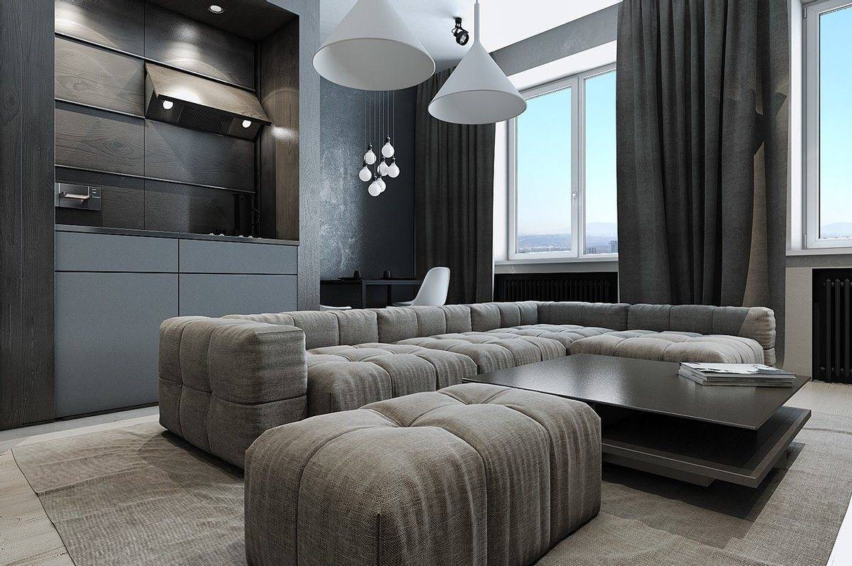В квартирах или домах, где в роли гостиной выступает одна большая комната, а остальные заняты спальней, ванной, часто прибегают к совмещению с ней других зон.