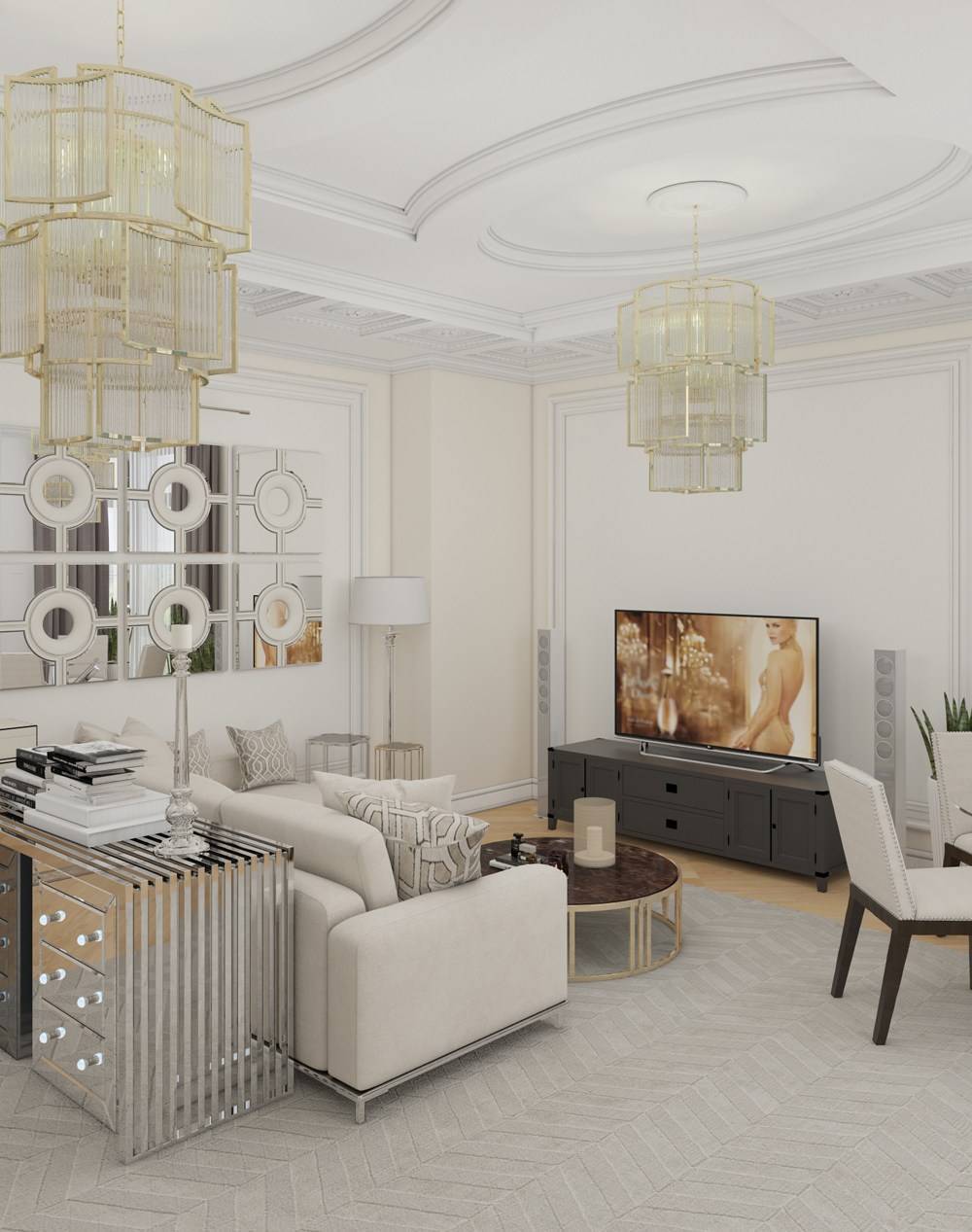 Стеклянные шарики и металлические колеса — модные светильники для гостиной в 2020 году