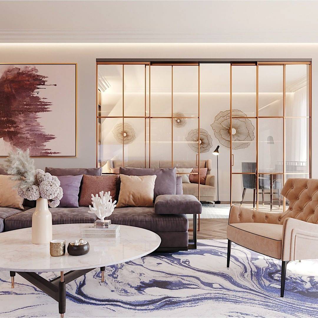 Грамотный план разграничения зон повысит функциональность гостиной и добавит больше комфорта.