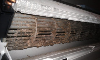 Радиатор и теплообменник чаще всего располагаются во внутреннем блоке, который нужно разобрать. Сервисная служба за такую работу просит существенную сумму, но можно сэкономить и сделать всё своими руками. Снимите переднюю крышку и вытащите фильтры. Очистить внутренности вам поможет пылесос: удалите пыль и пух, двигаясь от верхней части к нижней. Пластины испарители очень хрупкие и их легко повредить, поэтому используйте для их очистки кисточку с длинным ворсом. Можно воспользоваться и пароочистителем. Установив сплит-систему в режим рециркуляции, выставите самый нижний температурный порог и распылите антисептическое средство в области втягивания воздуха. Следите, чтобы капли жидкости не попали на радиатор!