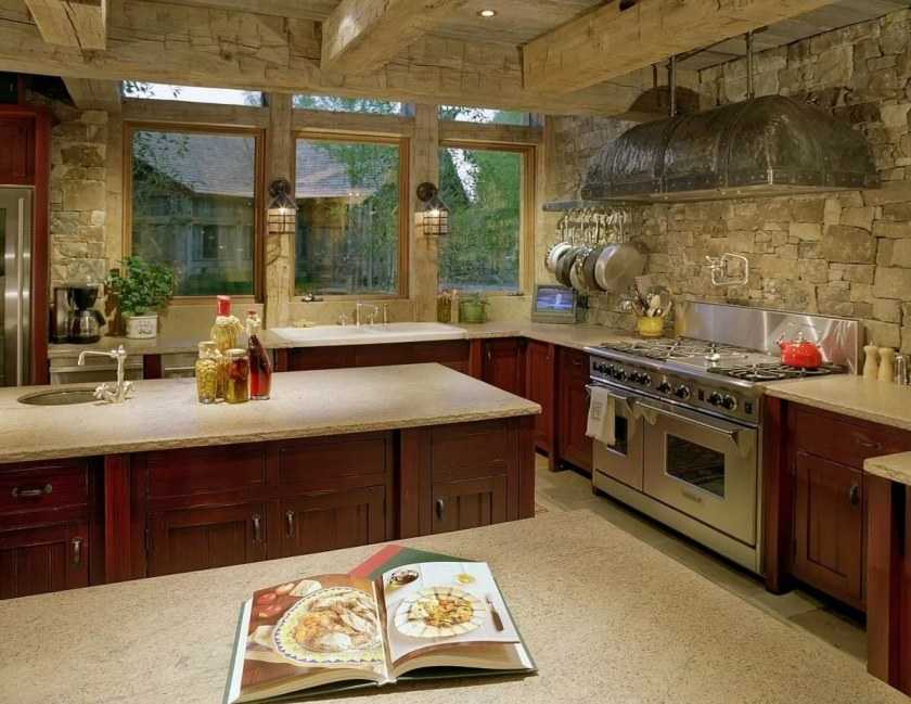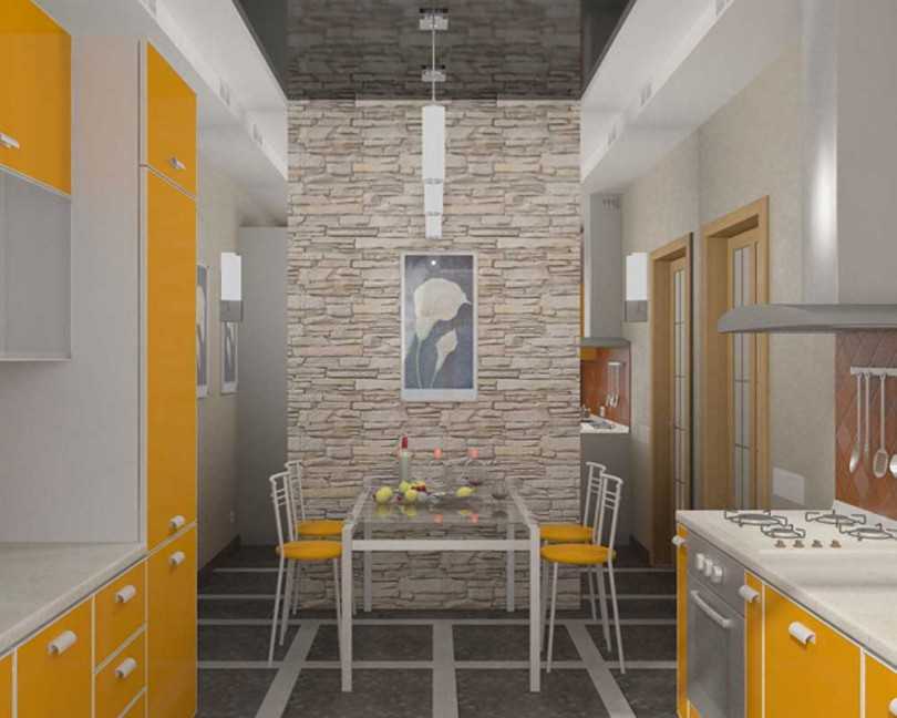 После установки современного натяжного потолка или покраски старого можно приступать к приведению стен «в божеский вид». Вспомните, какой стиль будет в вашей кухне. Исходя из направления, выберите подходящие материалы для отделки стен кухни. Для стен в кухне подойдут:
