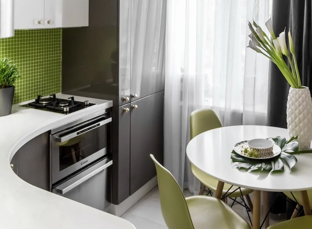 Для правильного зонирования площади помещения рекомендуется покупать кухонную мебель маленьких размеров.
