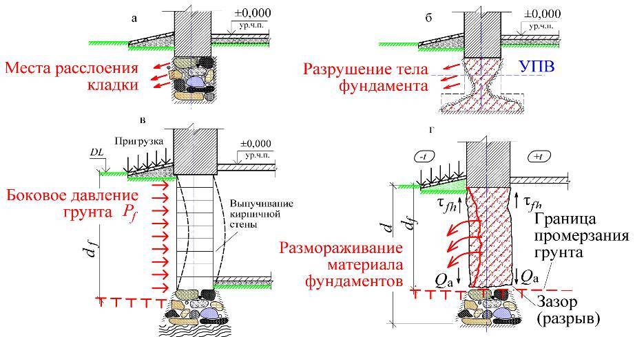 Структура и эксплуатационные характеристики фундамента изменяются под продолжительным воздействием вышеперечисленных факторов.