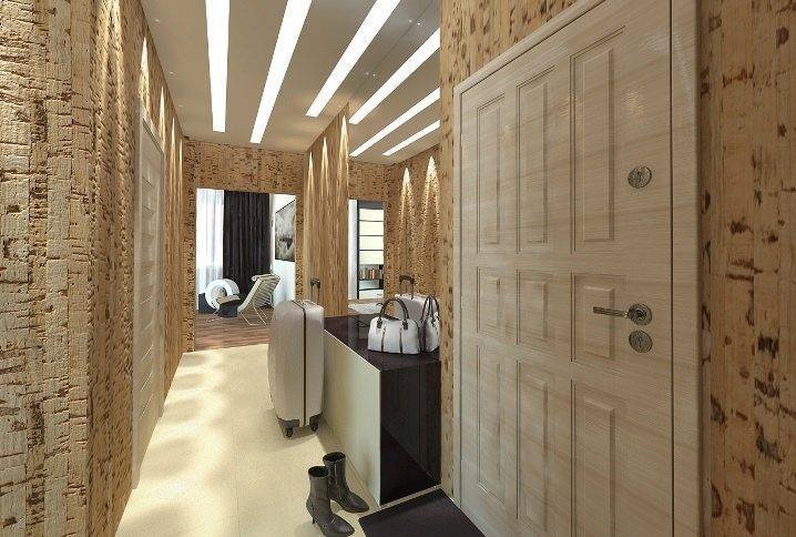 Идеально подходящим вариантом отделки для коридора станет пробка, которая обладает антистатическими качествами, огнестойка и негигроскопична, устойчива к деформации, ультрафиолету, и что самое важное, к механическим воздействиям. Благодаря прочности этого материала, ему не страшны когти и зубы животных