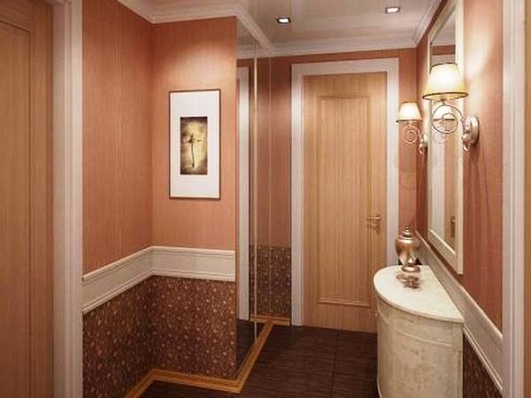 Прекрасным вариантом дизайна для ремонта коридора станут обои виниловые, которые просты в уходе и имеют продолжительный эксплуатационный период, а также не подвергаются появлению грибков.