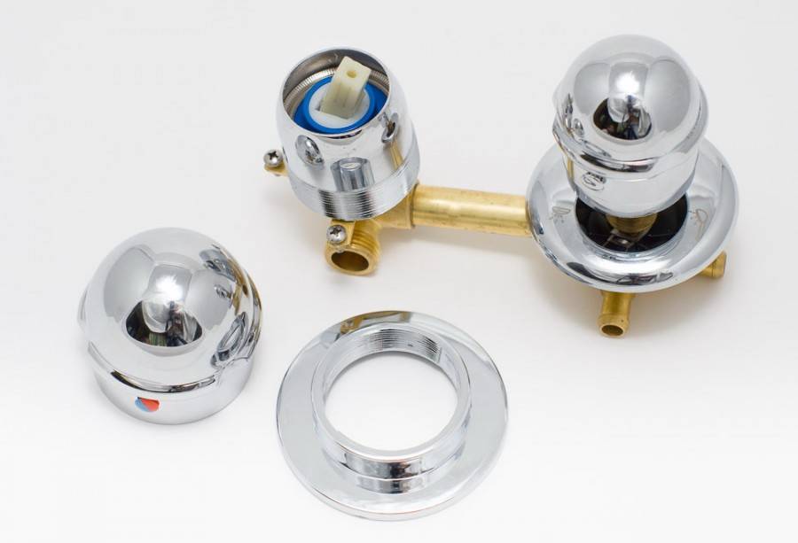 Данное устройство представляет собой , благодаря которому и производится регулировка потока горячей и холодной воды. Именно эта главная часть обычно и станет причиной их поломок, из-за которой может происходить протечка воды. Тем не менее, именно двухвентильные смесители наиболее удобны для установления их в ванной комнате.