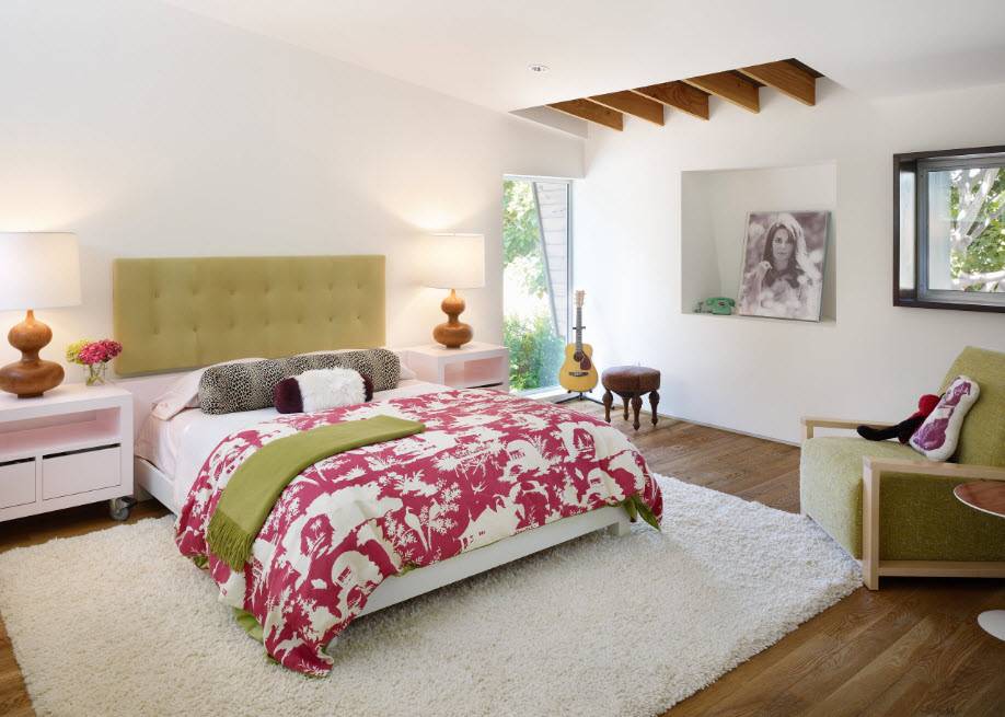 Выполняя ремонт спальни, мебель и другие предметы интерьера рекомендуется использовать светлых оттенков. Их дизайн должен быть максимально простым, что позволит создать ощущение свободного пространства.