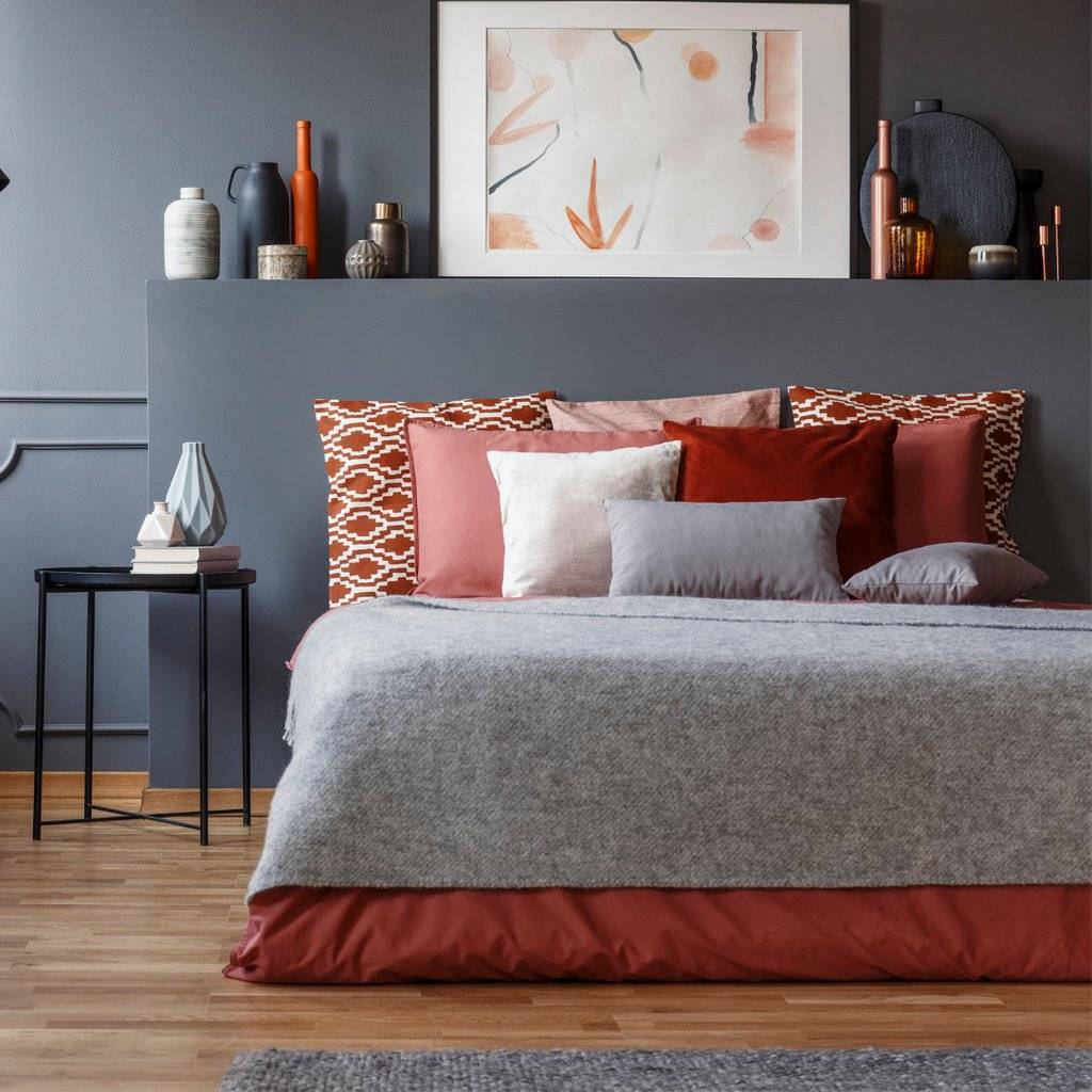 Достигнув нейтральной основы, вы можете очень часто менять внешний вид спальни. Все, что вам нужно, это запастись интересными комплектами постельного белья, одеялами, покрывалами и подушками.