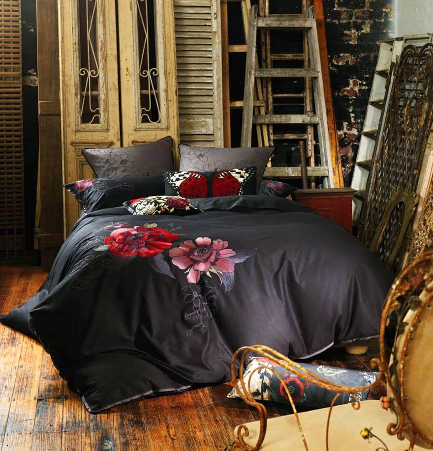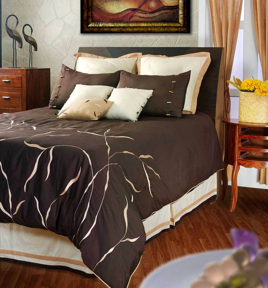 Осенью и зимой в моде темные цвета — зеленый бутылочный, темно-синий и мягкие, теплые ткани. Поэтому одеяло можно связать. Смешивание разных материалов выглядит интересно. Кровать может быть покрыта толстым хлопковым покрывалом, но также можно выбрать пушистое, шелковое, с оборками, вязаное крючком, льняное, фланелевое, атласное. Речь идет не о том, чтобы текстиль подбирать идеально по цвету, так как оттенки и рисунки не должны совпадать друг с другом на каждой подушке