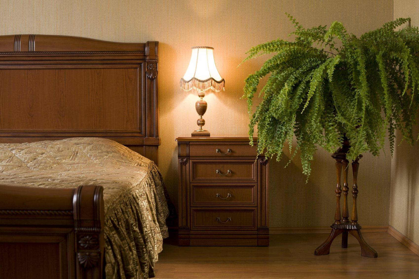Обустроить спальню по фен-шуй можно с использованием нескольких прикроватных тумбочек и комода. Нельзя устанавливать зеркало напротив входа, окна или кровати. Цвета интерьера зависят от стороны света, лучшим для супружеской пары будет красный, розовый, бежевый.