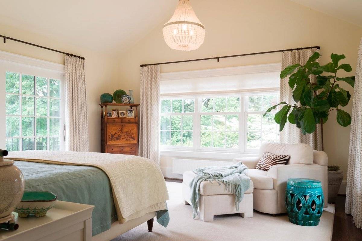Не стоит экономить на окнах в спальню, ведь от этого элемента зависит микроклимат в комнате и здоровье жильцов: выбирайте трехкамерный пакет, который сможет гарантировать максимальный уровень тепло- и звукоизоляции.