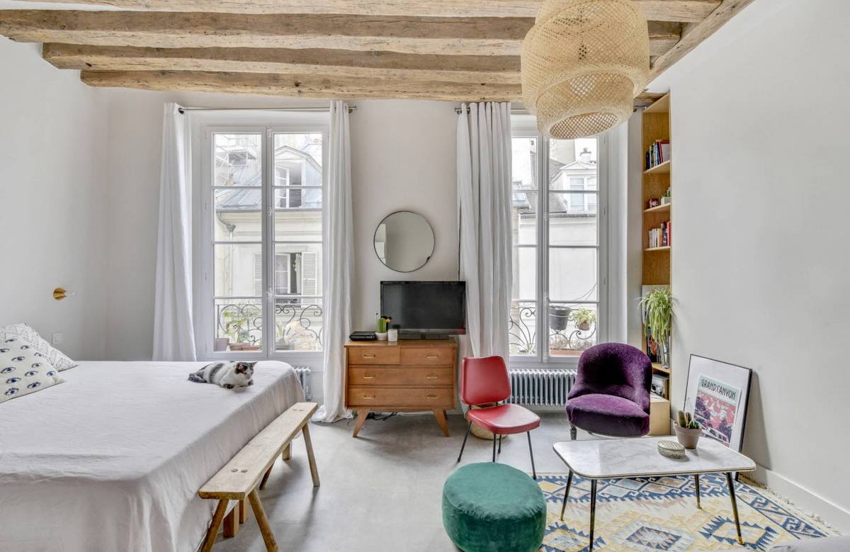 Двери и стены в такой квартире должны отсутствовать, за исключением санузла и коридора. В то же время полезные зоны, например, кухню, спальню и гостиную нужно разделить, используя для обозначения их границ диван, барную стойку или небольшие перегородки. Что касается спального места, то оно может скрываться за встроенным шкафом-купе. Альтернативное решение – кровать-трансформер, которая волшебным образом раскладывается из шкафа или преобразуется из небольшого диванчика. Также существуют модели, скрывающиеся под высоким подиумом, появляясь лишь в ночное время суток, при этом днем подиум служит красивой гостиной.