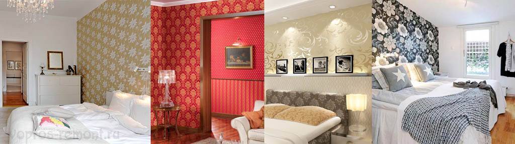 Комбинирование обоев в спальне