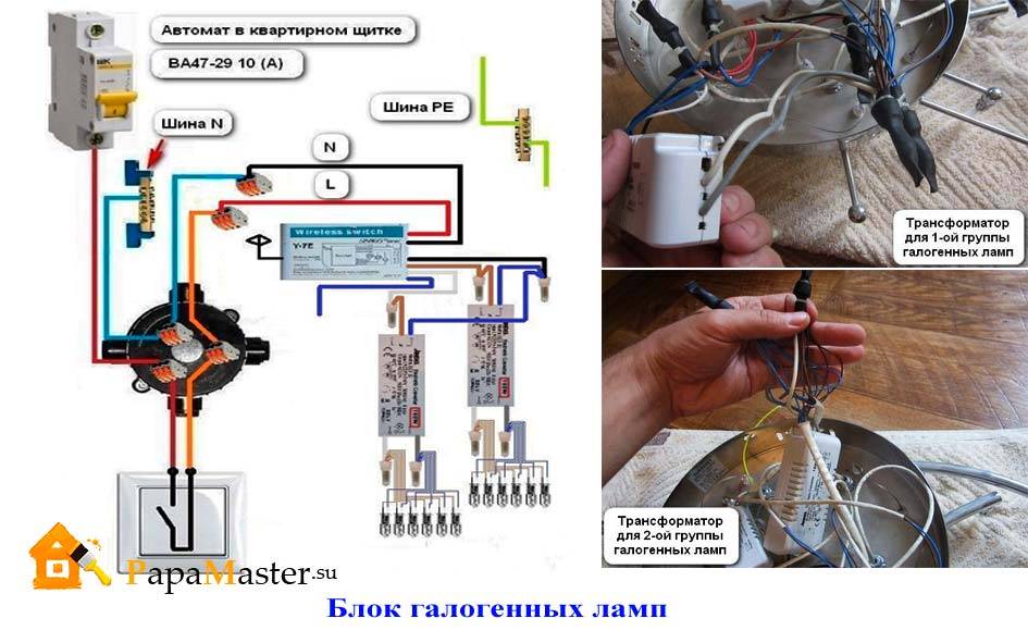 - С галогенными лампами. Для питания таких ламп используются трансформаторы, выполняющие импульсное преобразование подаваемого напряжения. В случае поломки каждая из ламп поочереднео проверяется мультиметром. Если лампы находятся в рабочем состоянии, выполняется проверка всех имеющихся трансформаторов.