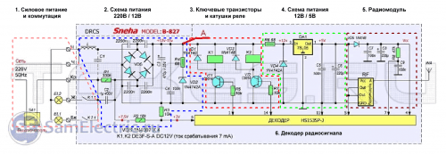 Схема контроллера для люстры с пультом управления Sneha B-827