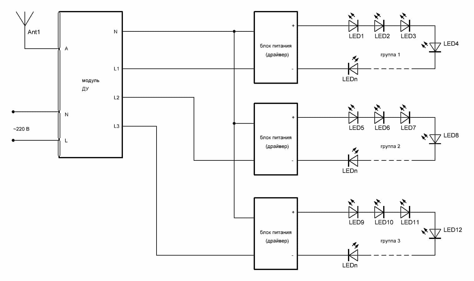 Схема блока управления светодиодной люстры с управлением от радио пульта