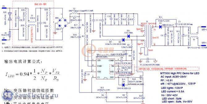 LED Driver MT7930 Typical. Схема электрическая принципиальная типовая для светодиодного прожектора
