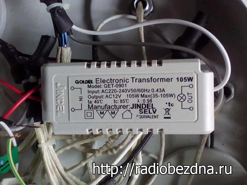 Важно — такие трансформаторы, на которых написано Output 12 VAC, работают только с галогеновыми лампами и светодиодными лампочками, работающими от переменного напряжения, т.к. на выходе — переменное напряжение!