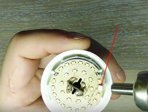 Рассмотрим на примере простой ремонт светодиодной лампы: