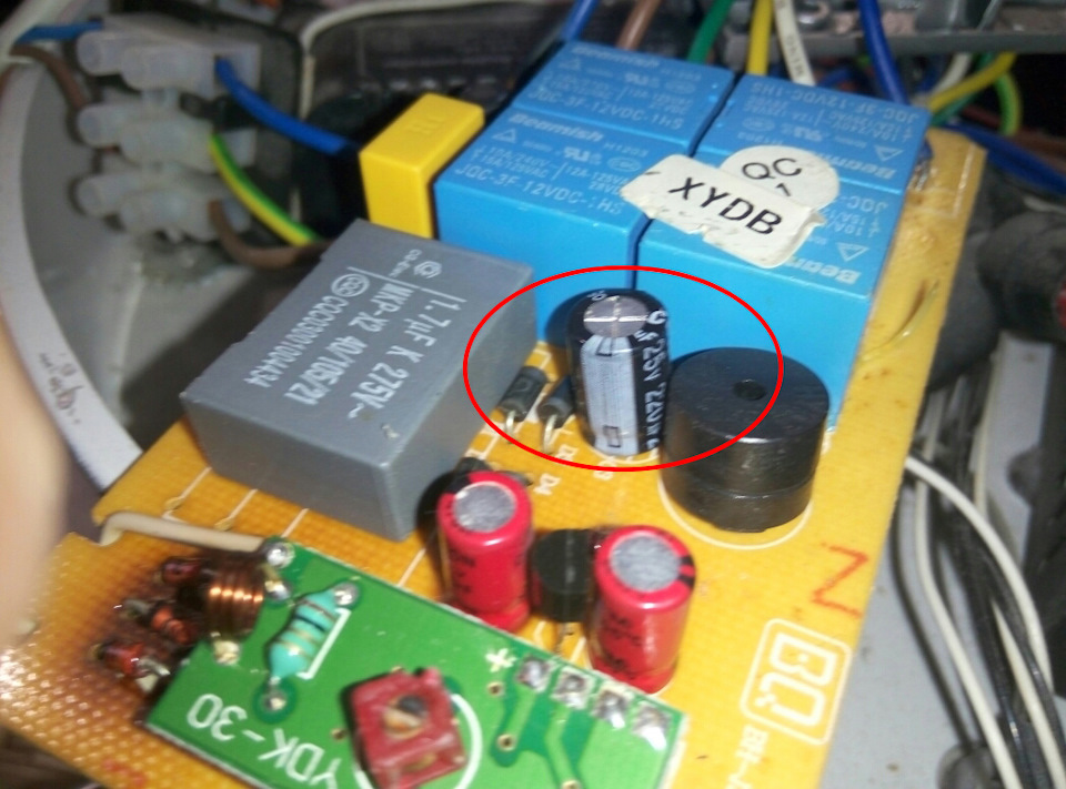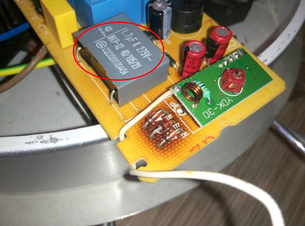 Питание на реле поступает через гасящий конденсатор, а излишки электроэнергии нейтрализуются балластным конденсатором. Существенным недостатком данного элемента считается место, где он впаян в общую плату. В процессе длительной эксплуатации пайка становится слабее, и реле может отвалиться в любой момент.