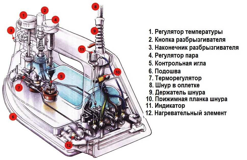 Устройство современного утюга с отпаривателем