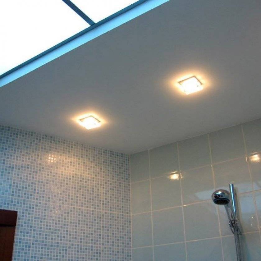 Что касается освещения, то лучше всего выполнить точечную подсветку в потолке, облицованном пластиковыми панелями. Этот вариант очень удобный, так как позволяет спрятать за ними элементы проводки.