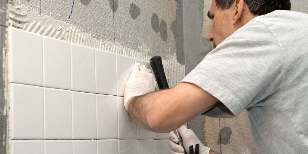 Плитку со штукатурным слоем тоже лучше сбить. Сейчас выпускаются клеевые смеси, позволяющие проводить плиточные работы по предыдущей облицовке, но это уменьшает объем ванной комнаты.