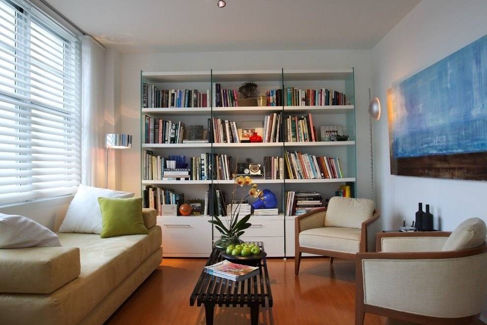 Расставленные на полках книги, буду выглядеть интересно, не прячьте литературу в громоздкие шкафы.