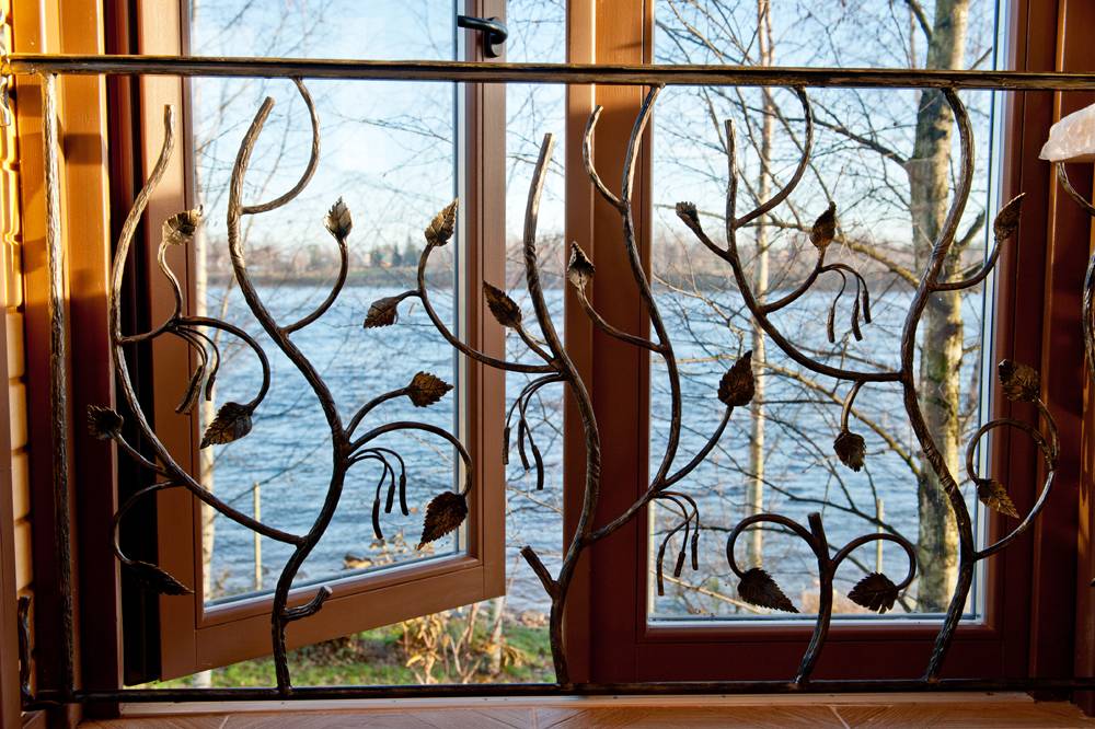 Если требуется установить решетку на окна дачного домика, тогда элементы сварки и ковки вряд ли понадобятся. Особенно если дом простой, деревянный. В таком варианте вертикальные детали располагаются в значительном отдалении друг от друга, так что естественное освещение затеняться не будет.