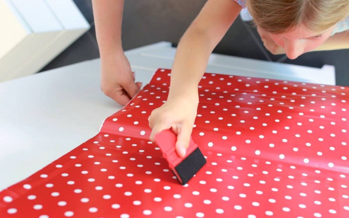 При помощи самоклеящейся пленки можно декорировать самые разные предметы и поверхности. Она долговечна и устойчива к механическому воздействию, влаге и перепадам температур. Перед поклейкой поверхность зачищается и обезжиривается. После наклейки пленка разравнивается шпателем для устранения всех пузырей.