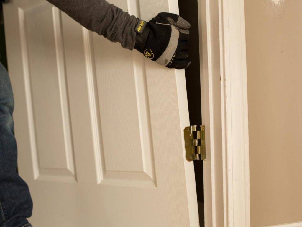 Перекошенная дверь свидетельствует об ослаблении петель либо разбухании древесины. Поэтому для восстановления полотна необходимо выяснить причину возникновения данного дефекта. Если дверь перекосило из-за ослабленных петель, последние нужно повторно затянуть.