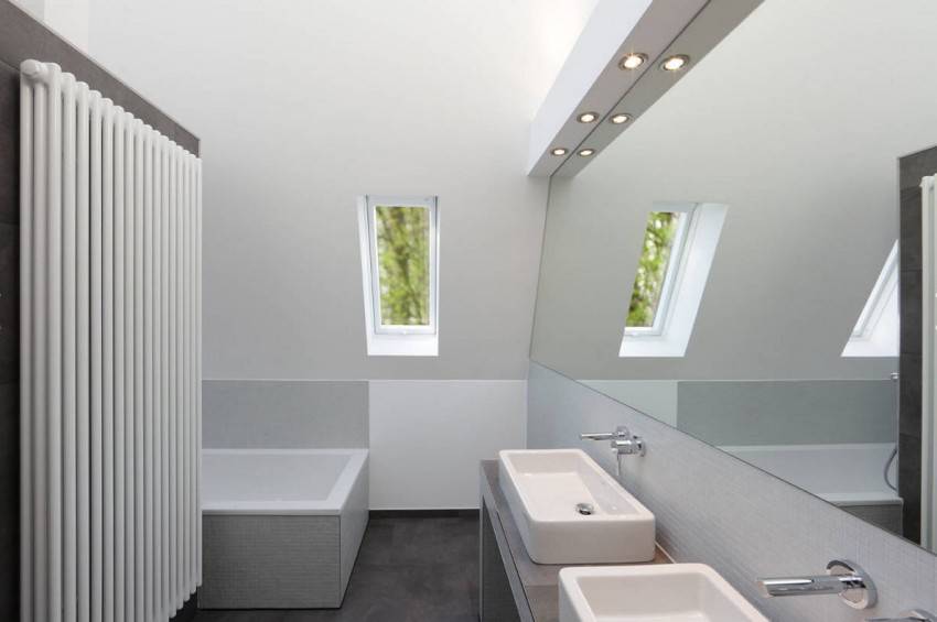 На планировку ванной комнаты влияет также длина стен и расположение входа.