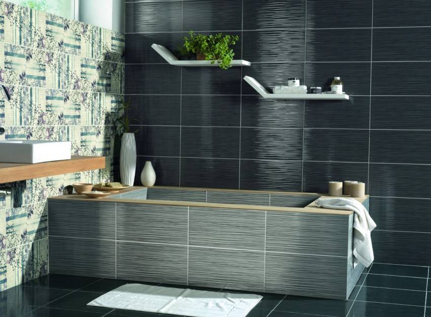 В этом году на пике популярности соединение деревянных поверхностей и плитки. Натуральные, природные материалы набирают обороты в оформлении декора. Это может быть ванна из натурального дерева, столешница, тумба, раковина, полы или аккуратные функциональные полочки.
