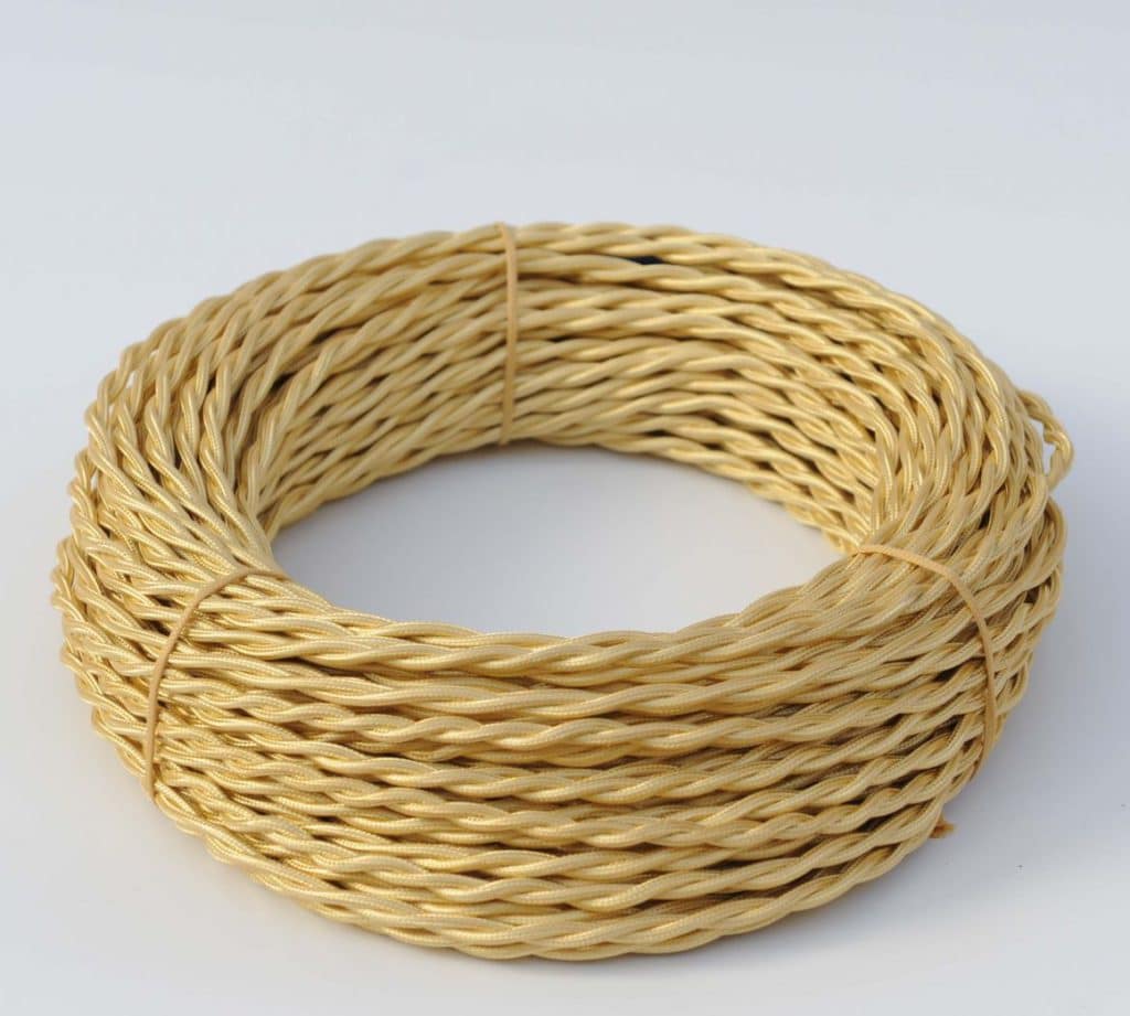 Для прокладки такой проводки используются многожильные медные провода, перекрученные между собой. Сами жилы состоят из множества тонких проволочек, придающих им высокую механическую прочность. Такие провода достаточно гибкие, что упрощает монтаж ретро проводки в деревянном доме. Медные жилы защищены надежной изоляцией. Для внешней оболочки используется шелковая нить, пропитанная антипиринами. За счет этого слоя и создается тот самый вид, полностью соответствующий старинной электропроводке.