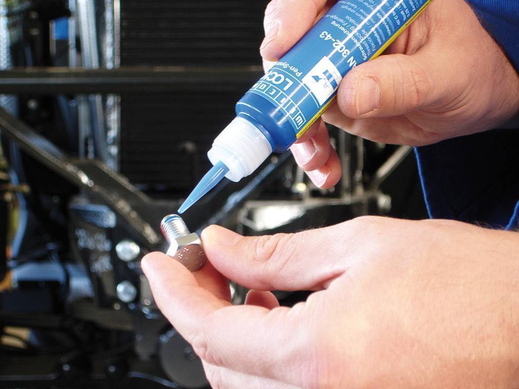 С помощью резьбового соединительного фиксатора снимается вариант самопроизвольного ослабления в месте закручивания. Он заменяет по свойствам механические способы фиксации (гроверные шайбы), стопорные кольца и шплинты. Плюсами является увеличение прочности соединения, предотвращается резьбовое окисление, нет надобности для дополнительного подтягивания болтов после монтажа. Характеризуется устойчивостью к вибрациям, ударным нагрузкам и температурному расширению. Высокоустойчив к любым видам технических жидкостей.