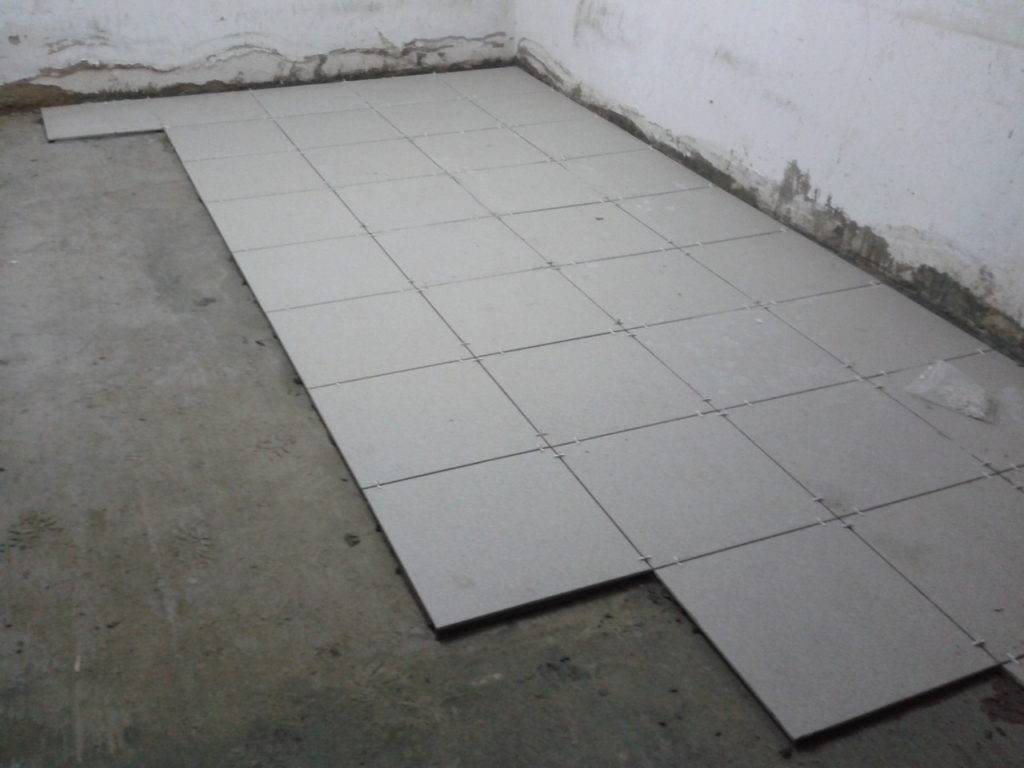 - Как только высохнет грунтовка, на поверхность пола можно укладывать материал. В таком виде его оставляют отлежаться несколько дней.
