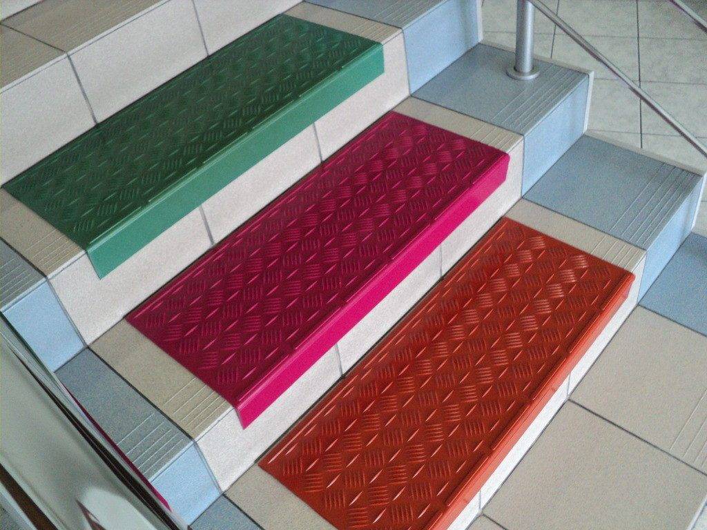 Данные изделия зачастую крепят на ступеньках из скользкой плитки. В качестве каркаса в них используется алюминий. Это позволяет крепить планки в различных местах. Внутрь таких конструкций вставляют резиновые вставки, которым придают разную форму. Подобные конструкции очень часто встречаются на ступеньках торговых центров и других аналогичных зданий.