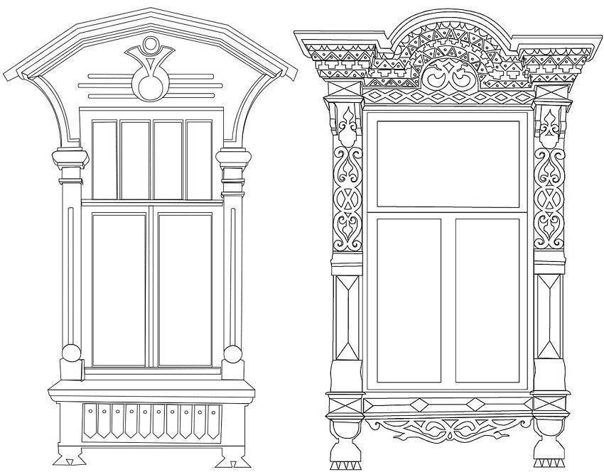 Эскизы резных оконных деревянных наличников