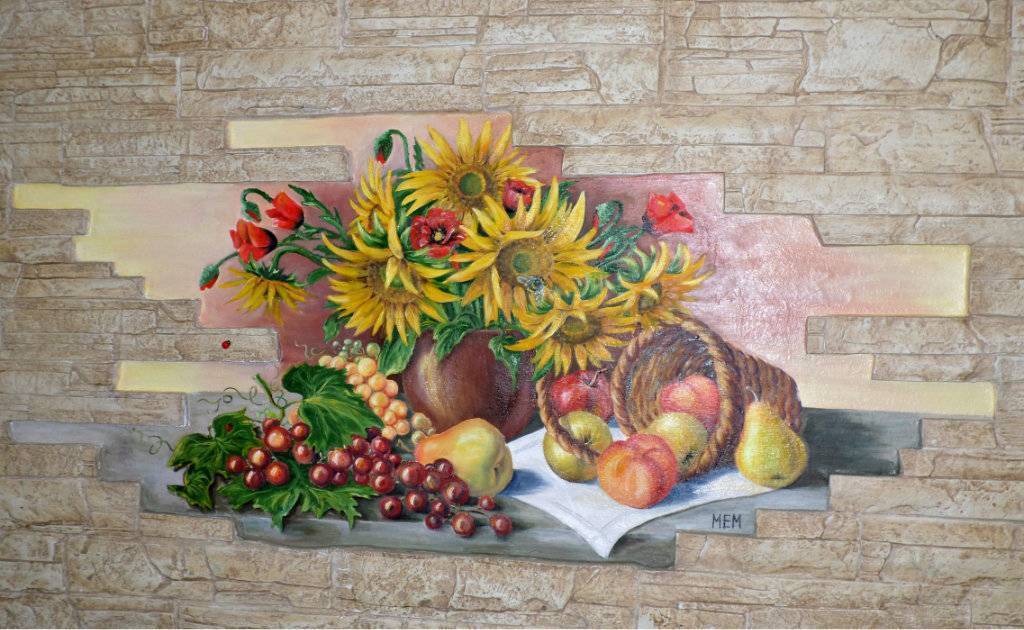 Первый этап работ – подготовка основания под настенное изображение. Поверхность стенки выравнивается и окончательно отделывается следующими способами: