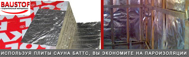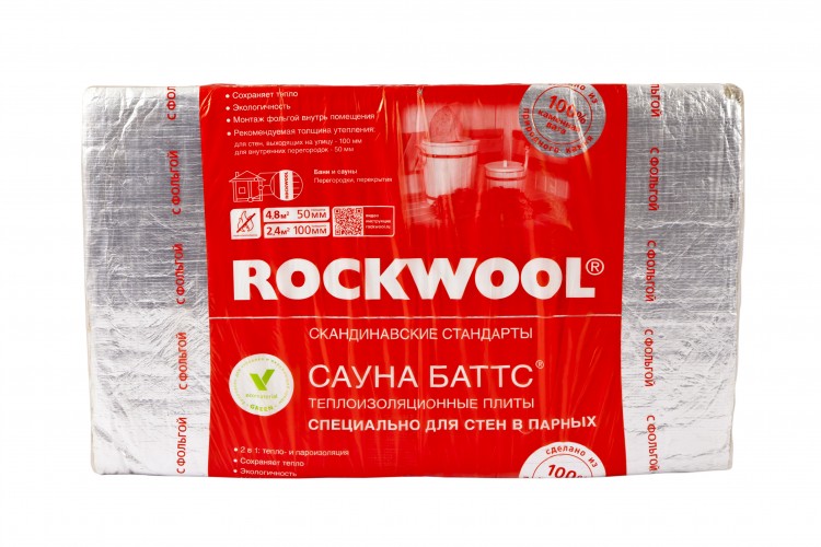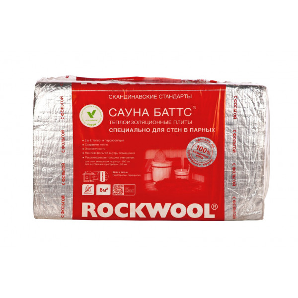 Помещения с высокой влажностью и температурой требуют звукоизоляции и утепления специальными материалами. Плиты Сауна Баттс выпускаются с односторонним покрытием алюминиевой фольгой. Металлизированный слой отражает тепло и уменьшает намокание ваты. Базальтовый утеплитель сводит к минимуму вероятность пожара. Он изготавливается из экологически безопасного сырья, не плесневеет от влажности.