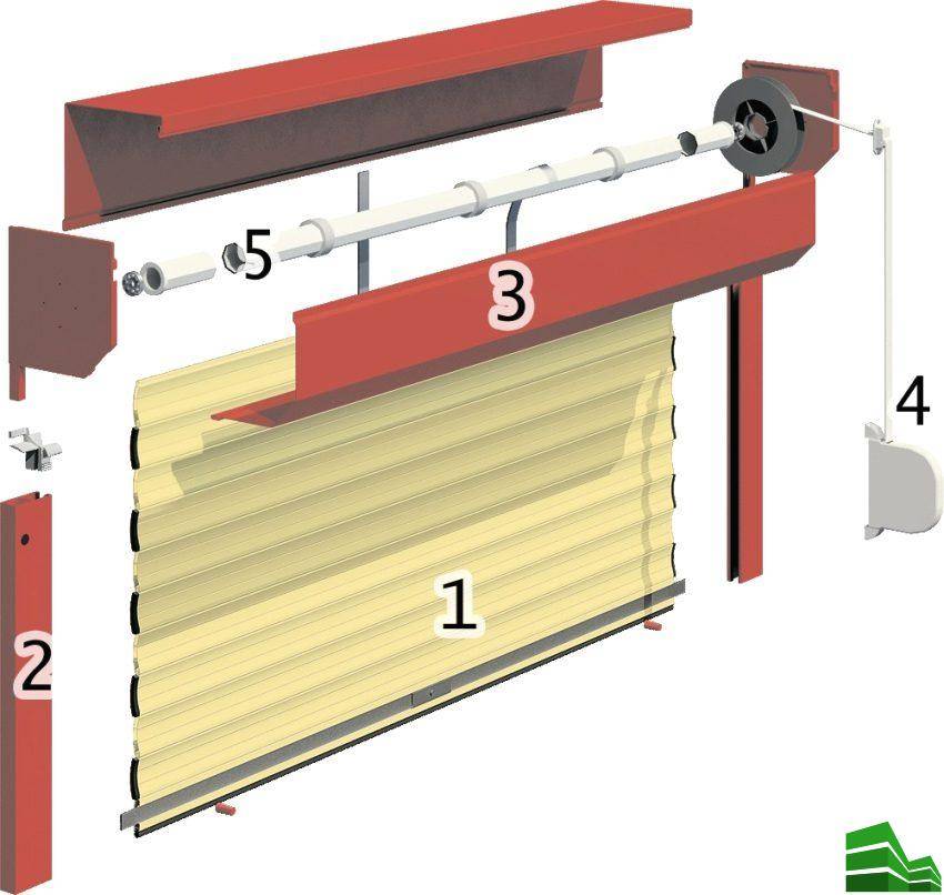 Рольставни для гаражей представляют собой механизм из основных и дополнительных элементов.