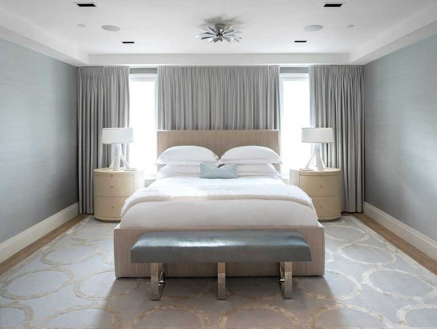 При желании смягчить обстановку в спальне, рекомендуется выбирать шторы из воздушной ткани, похожей на тюль.