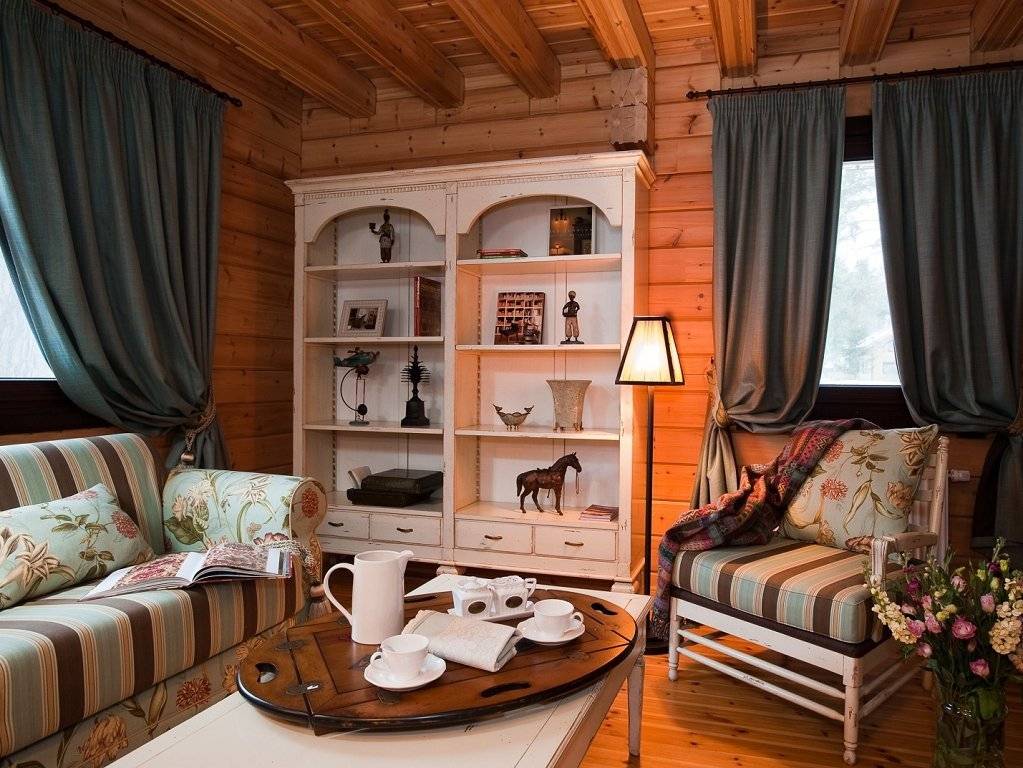 - мебель – простая и грубая деревянная, плетеная, предпочтительно ручной работы.