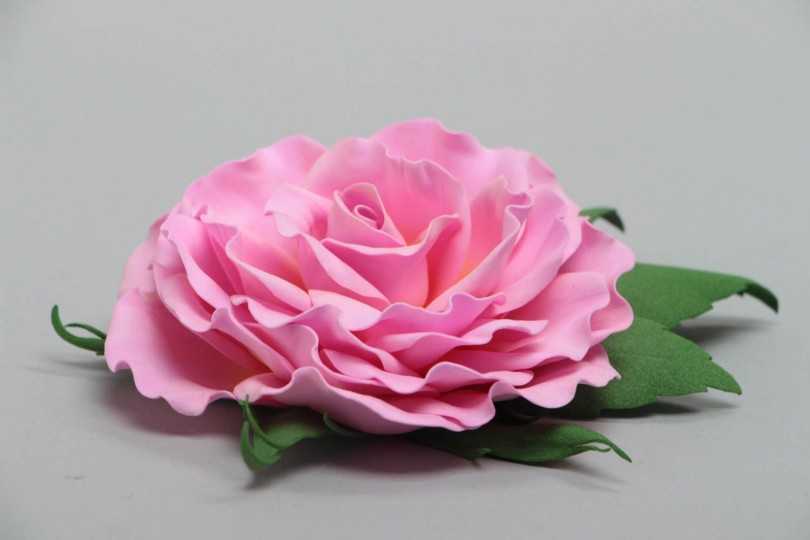 Большие розы из зефирного фоамирана выглядят крайне реалистично, отличаясь стойкостью и длительным сроком эксплуатации. Их можно делать как одноцветными, так и двухцветными или даже разноцветными. Возможен вариант создания стандартной розы, пионовидной или же букета из мелких бутончиков.