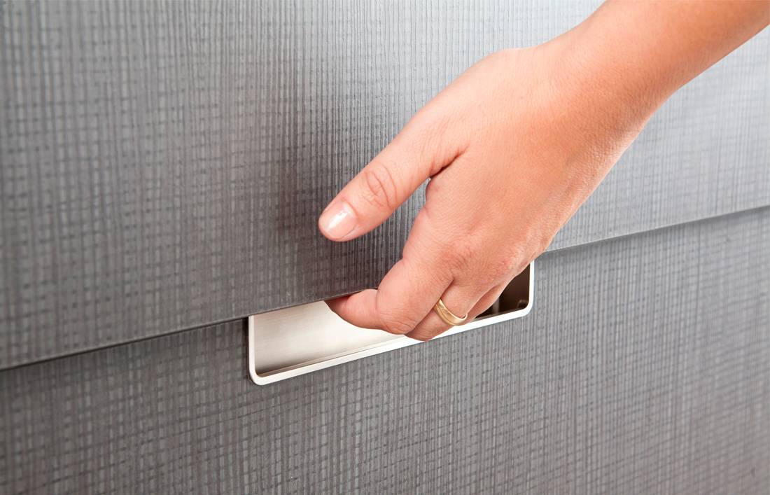 - Многофункциональность. Врезная мебельная ручка может устанавливаться не только на двери шкафов, но и на ящики. Такой фурнитурой удобно пользоваться.
