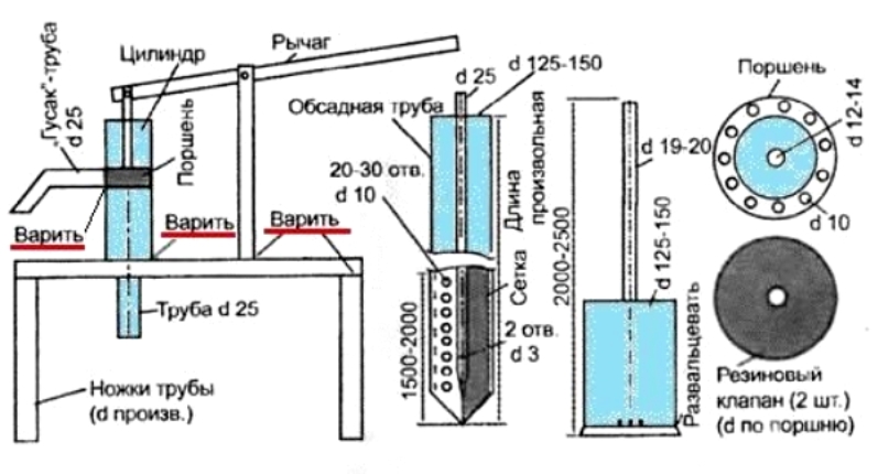 Видео – Ручной насос на скважину без фундамента