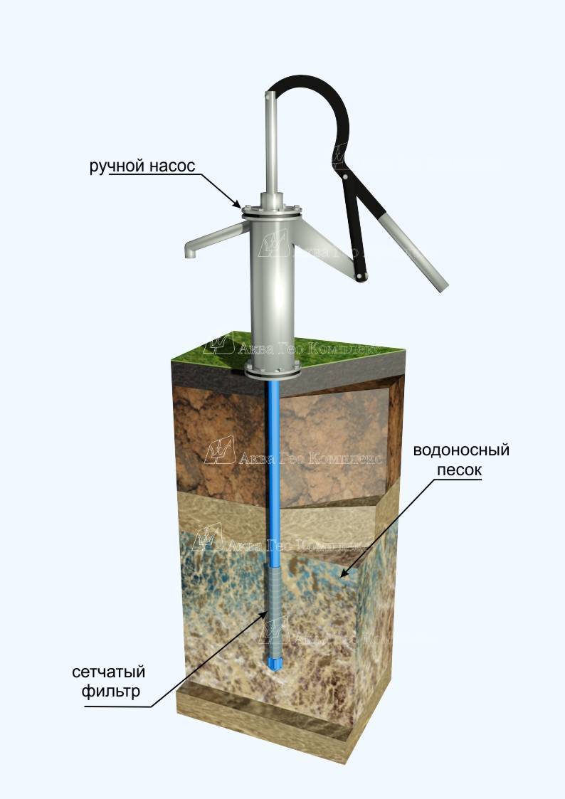 - глубина залегания водоносного слоя (от нее зависит напор, который должен обеспечить ручной насос для воды из скважины);