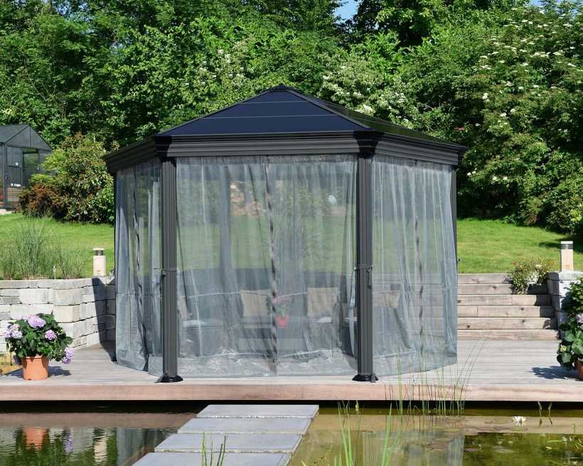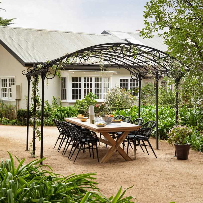 Надо понимать, что, кроме продуваемости и лёгкости, архитектурный элемент не скроет от глаз окружающие предметы. Поэтому, если на участке имеются места, наличие которых вы хотели бы скрыть – это не тот случай.