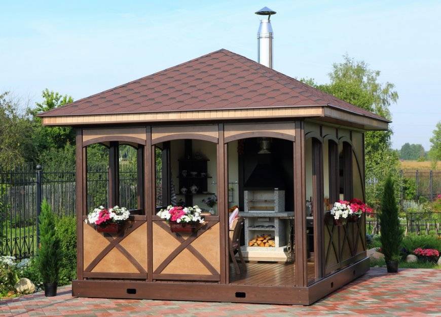 И наоборот, для огромного участка подойдет закрытая беседка, напоминающая гостевой домик, где можно не только посидеть днем, но и переночевать при необходимости.